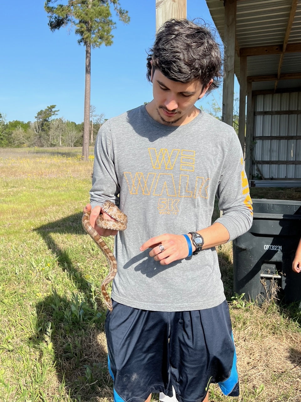 Luke grew up in Waco, Texas, and graduated from Eagle Christian Academy in 2020. He went on to earn his Bachelor of Science in Wildlife Management from Texas A&M University in 2024. During his studies, Luke gained valuable field experience through an internship at Bamberger Ranch, where he further developed his interest in conservation-focused wildlife management. Luke joined the Ellen Trout Zoo team in June of 2024 as the Louisiana Pine Snake Specialist, bringing a strong academic background and a passion for species conservation to this critical role.